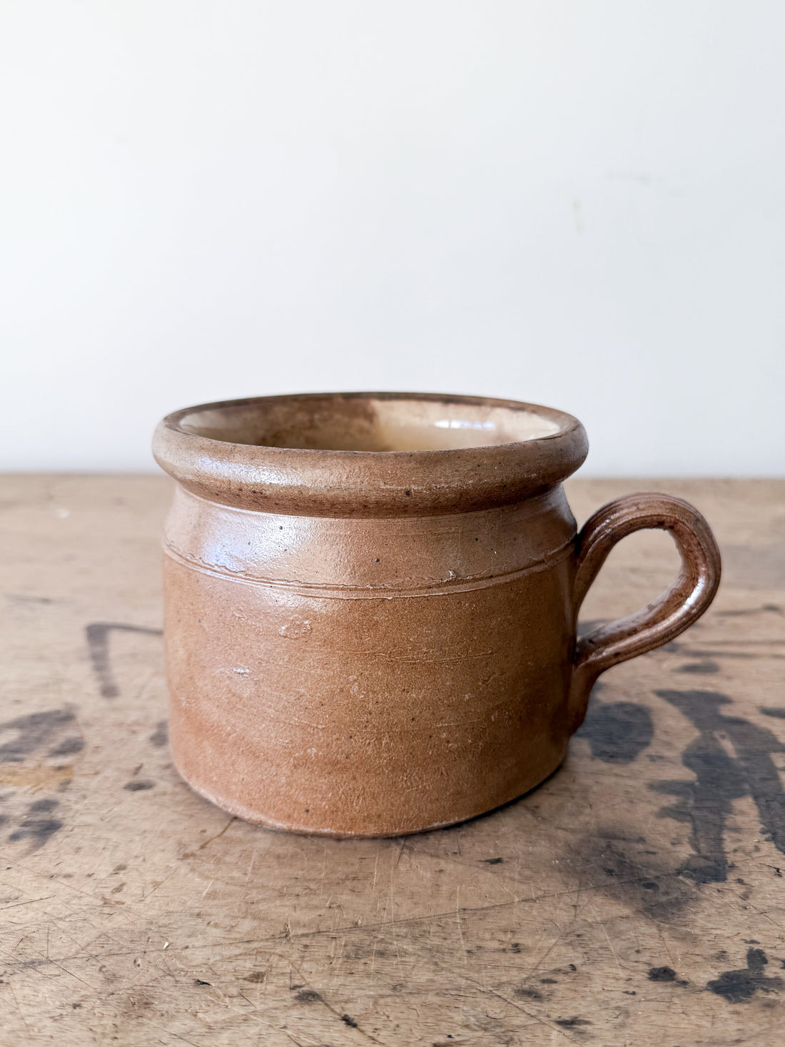 Vintage French Stoneware Small Handled Crock