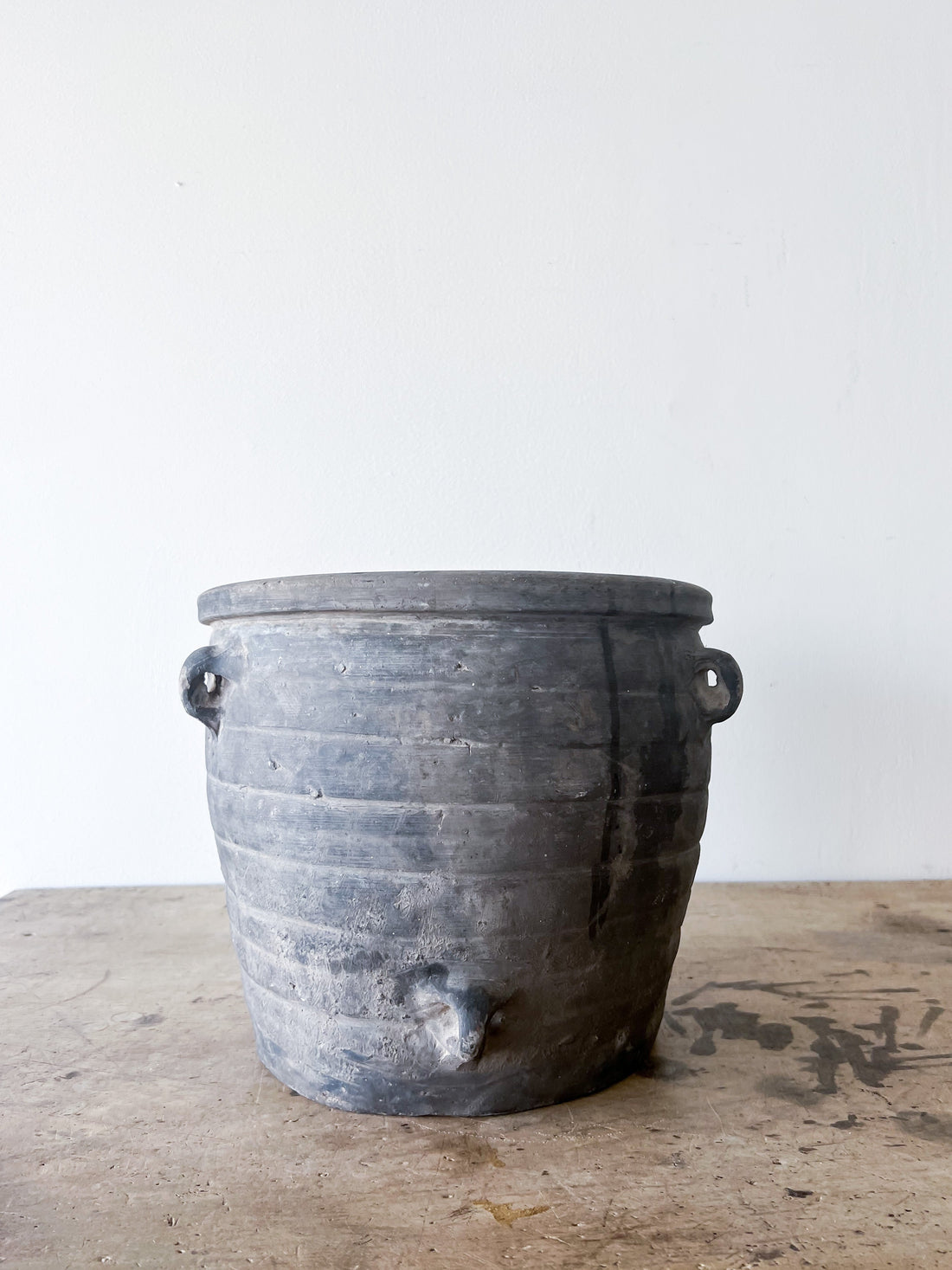 Multi Handled Grey Clay Pot