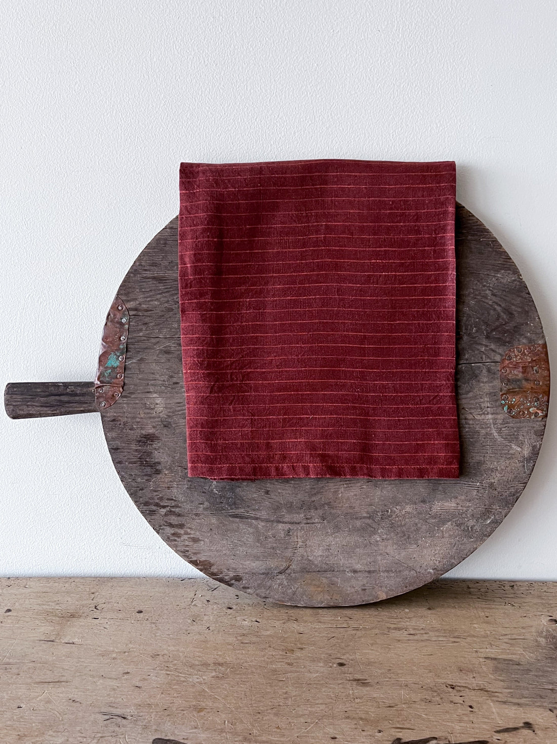 Wine Pinstripe Linen Tea Towel